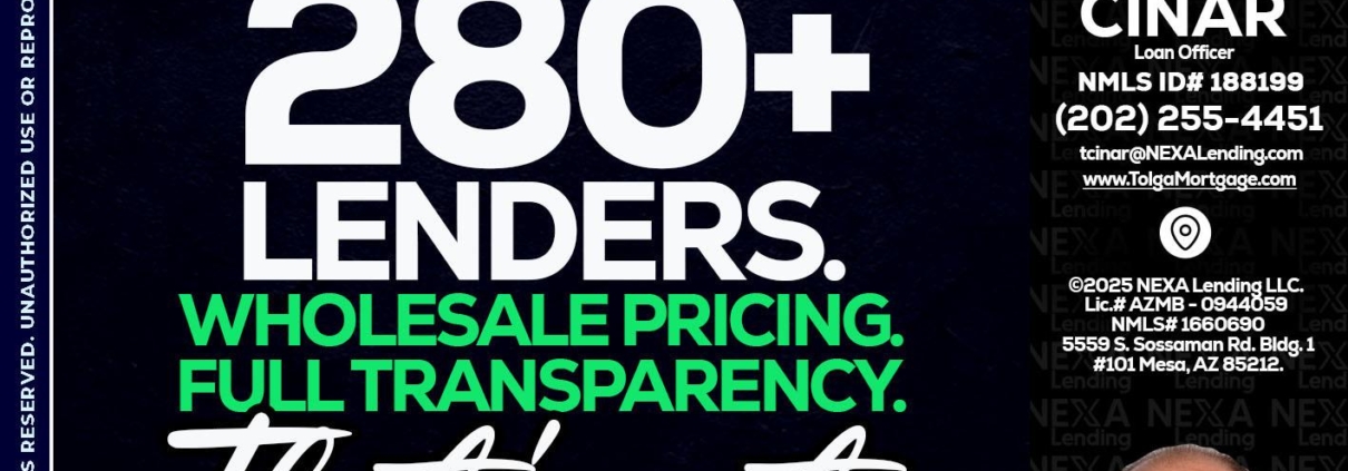 Hi, my name is Tolga Cinar. I’m a Loan Officer with NEXA Mortgage LLC., offering personalized mortgage solutions, fast customized quotes, great rates and service with integrity.