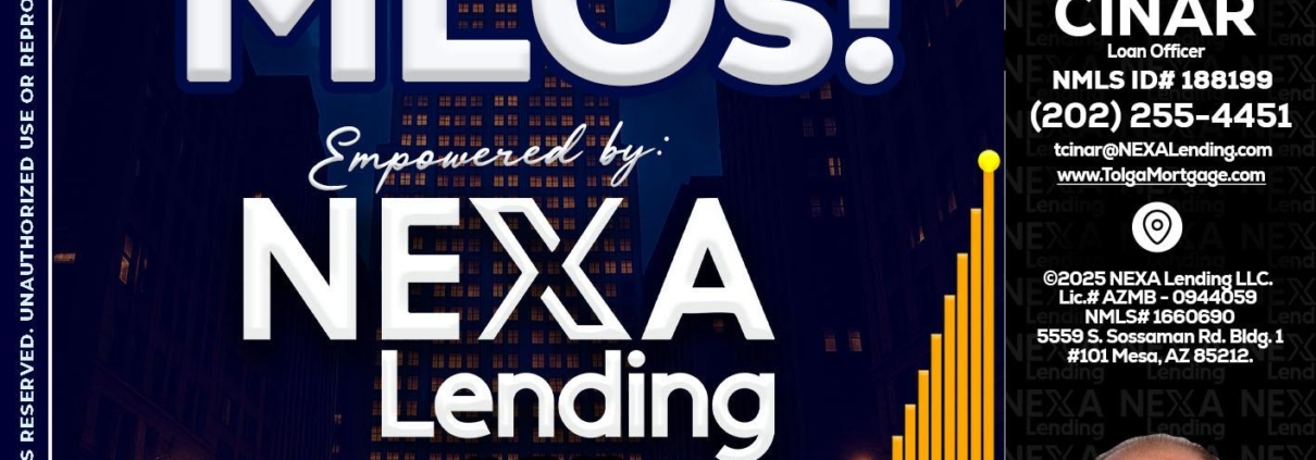 Hi, my name is Tolga Cinar. I’m a Loan Officer with NEXA Mortgage LLC., offering personalized mortgage solutions, fast customized quotes, great rates and service with integrity.