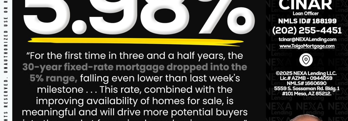 Hi, my name is Tolga Cinar. I’m a Loan Officer with NEXA Lending LLC., offering personalized mortgage solutions, fast customized quotes, great rates and service with integrity.