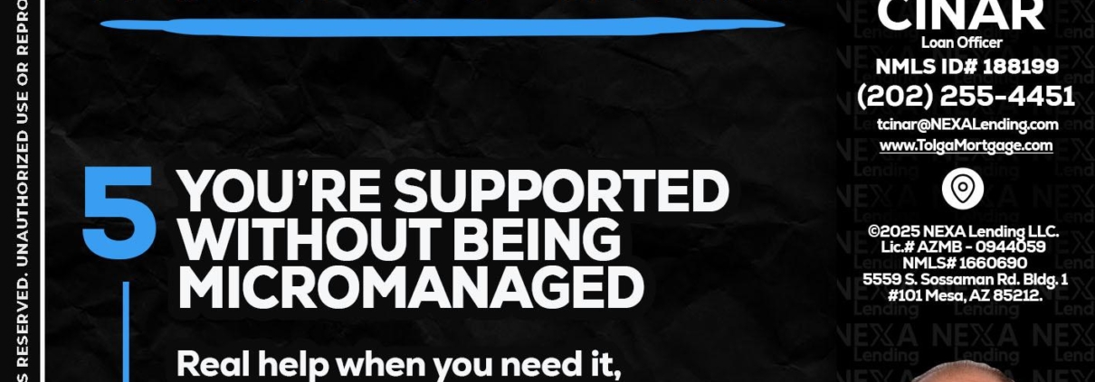 Hi, my name is Tolga Cinar. I’m a Loan Officer with NEXA Lending LLC., offering personalized mortgage solutions, fast customized quotes, great rates and service with integrity.