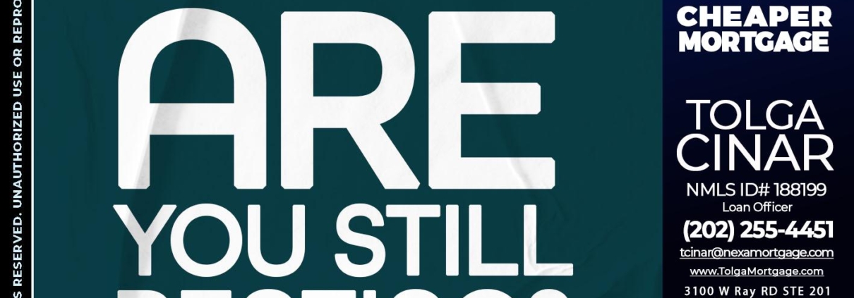 ARE YOU STILL RENTING? - Tolga Cinar -Mortgage Loan OriginatorHi, my name is Tolga Cinar. I’m a Loan Officer with NEXA Mortgage LLC., offering personalized mortgage solutions, fast customized quotes, great rates and service with integrity.