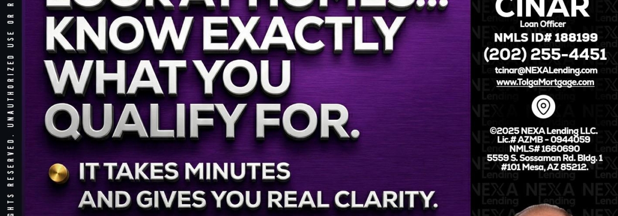 Hi, my name is Tolga Cinar. I’m a Loan Officer with NEXA Lending LLC., offering personalized mortgage solutions, fast customized quotes, great rates and service with integrity.