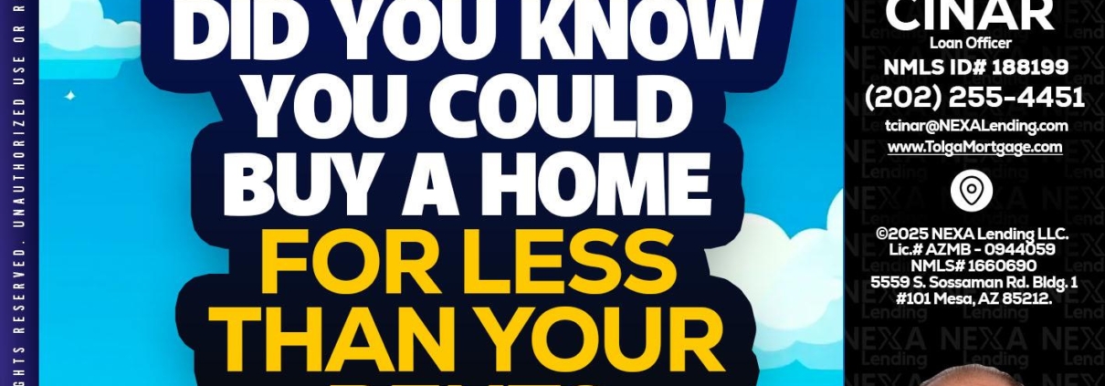 Hi, my name is Tolga Cinar. I’m a Loan Officer with NEXA Lending LLC., offering personalized mortgage solutions, fast customized quotes, great rates and service with integrity.