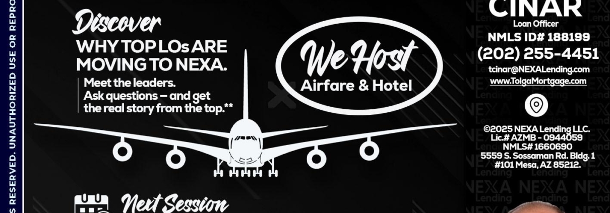 Hi, my name is Tolga Cinar. I’m a Loan Officer with NEXA Mortgage LLC., offering personalized mortgage solutions, fast customized quotes, great rates and service with integrity.