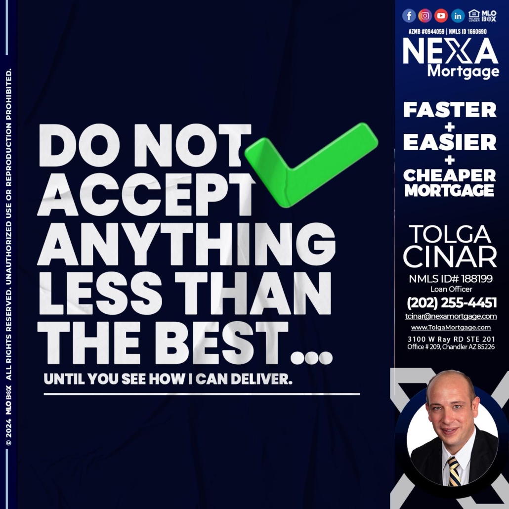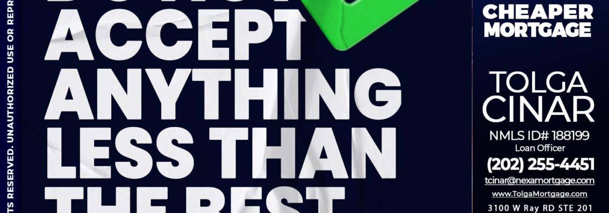 Hi, my name is Tolga Cinar. I’m a Loan Officer with NEXA Mortgage LLC., offering personalized mortgage solutions, fast customized quotes, great rates and service with integrity.