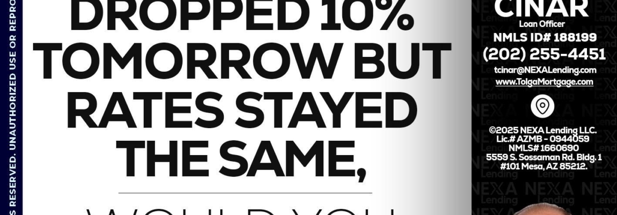 Hi, my name is Tolga Cinar. I’m a Loan Officer with NEXA Mortgage LLC., offering personalized mortgage solutions, fast customized quotes, great rates and service with integrity.