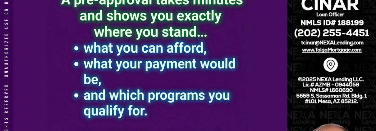 Hi, my name is Tolga Cinar. I’m a Loan Officer with NEXA Lending LLC., offering personalized mortgage solutions, fast customized quotes, great rates and service with integrity.