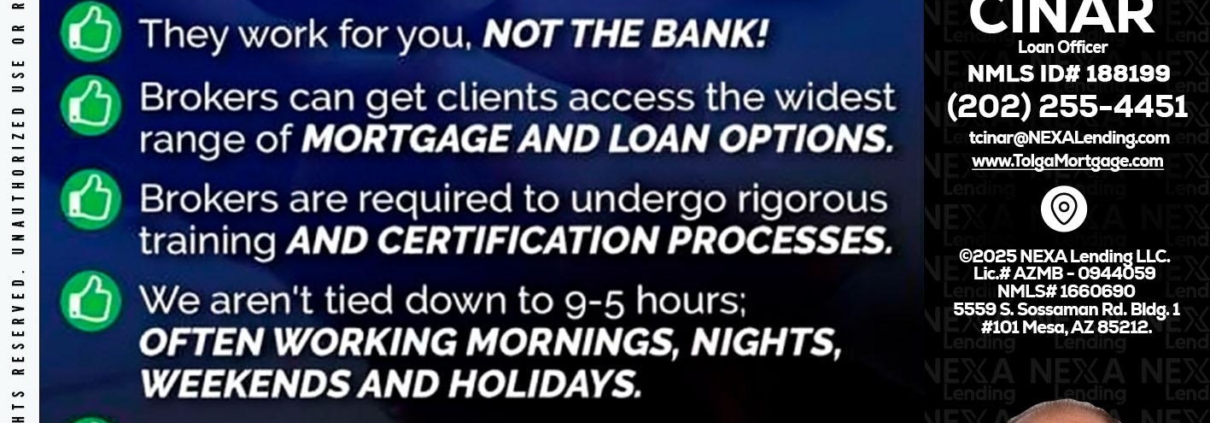 Hi, my name is Tolga Cinar. I’m a Loan Officer with NEXA Lending LLC., offering personalized mortgage solutions, fast customized quotes, great rates and service with integrity.