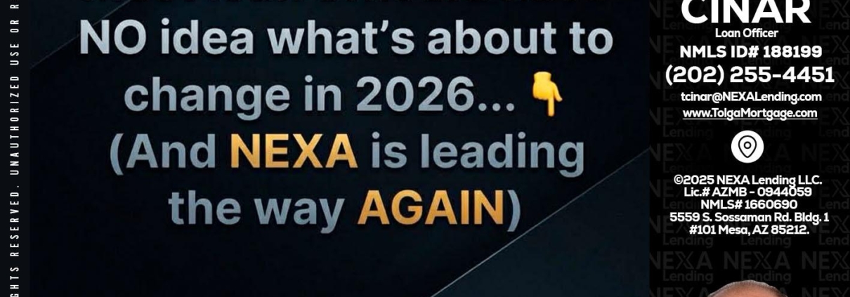 Hi, my name is Tolga Cinar. I’m a Loan Officer with NEXA Lending LLC., offering personalized mortgage solutions, fast customized quotes, great rates and service with integrity.