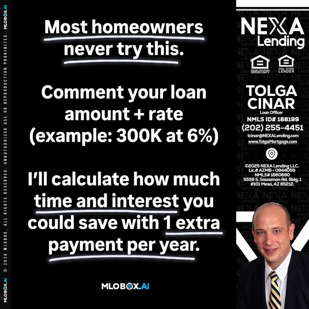 most owners - Tolga Cinar -Mortgage Loan OriginatorHi, my name is Tolga Cinar. I’m a Loan Officer with NEXA Lending LLC., offering personalized mortgage solutions, fast customized quotes, great rates and service with integrity.