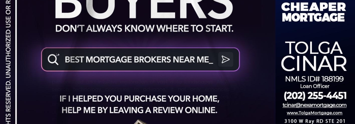 Hi, my name is Tolga Cinar. I’m a Loan Officer with NEXA Mortgage LLC., offering personalized mortgage solutions, fast customized quotes, great rates and service with integrity.