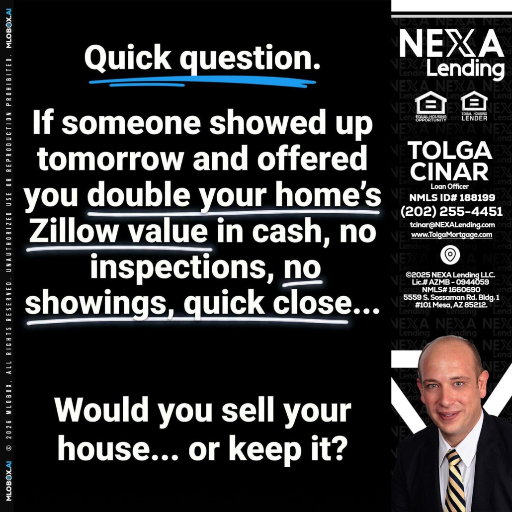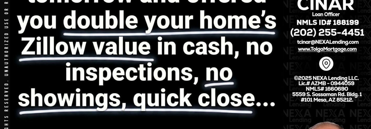 Hi, my name is Tolga Cinar. I’m a Loan Officer with NEXA Lending LLC., offering personalized mortgage solutions, fast customized quotes, great rates and service with integrity.