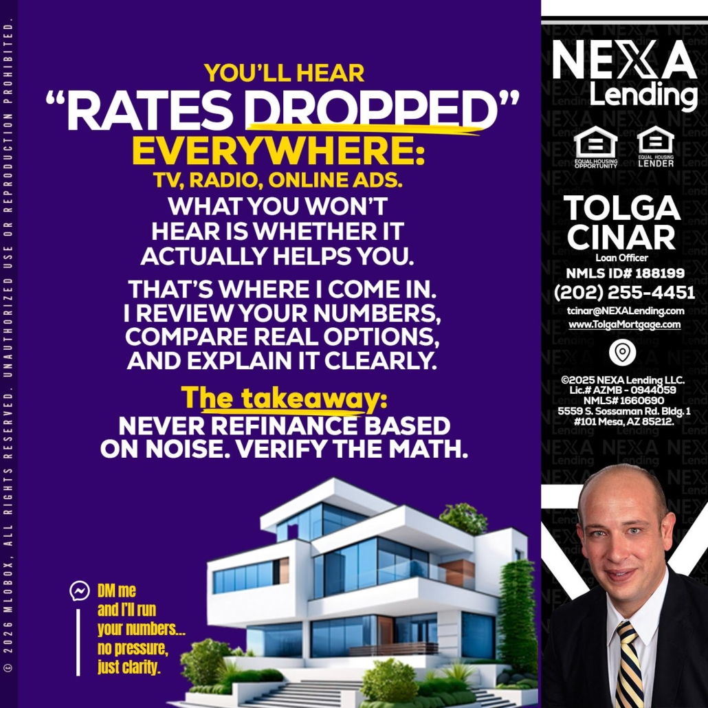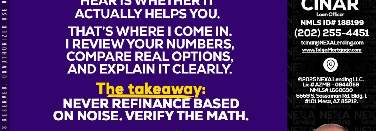 Hi, my name is Tolga Cinar. I’m a Loan Officer with NEXA Lending LLC., offering personalized mortgage solutions, fast customized quotes, great rates and service with integrity.