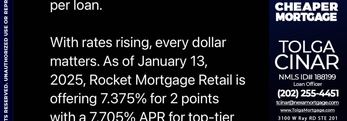 Hi, my name is Tolga Cinar. I’m a Loan Officer with NEXA Mortgage LLC., offering personalized mortgage solutions, fast customized quotes, great rates and service with integrity.