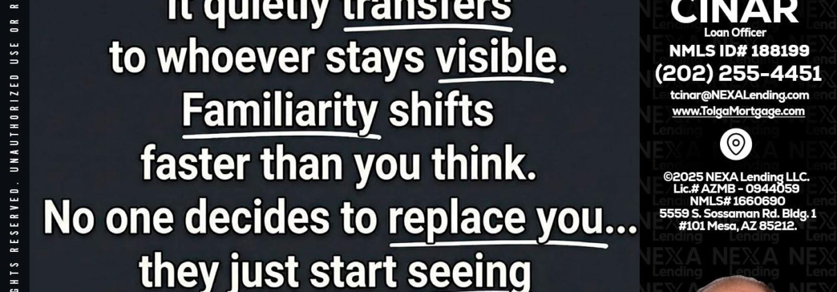 STOP SHOWING - Tolga Cinar -Mortgage Loan OriginatorHi, my name is Tolga Cinar. I’m a Loan Officer with NEXA Lending LLC., offering personalized mortgage solutions, fast customized quotes, great rates and service with integrity.