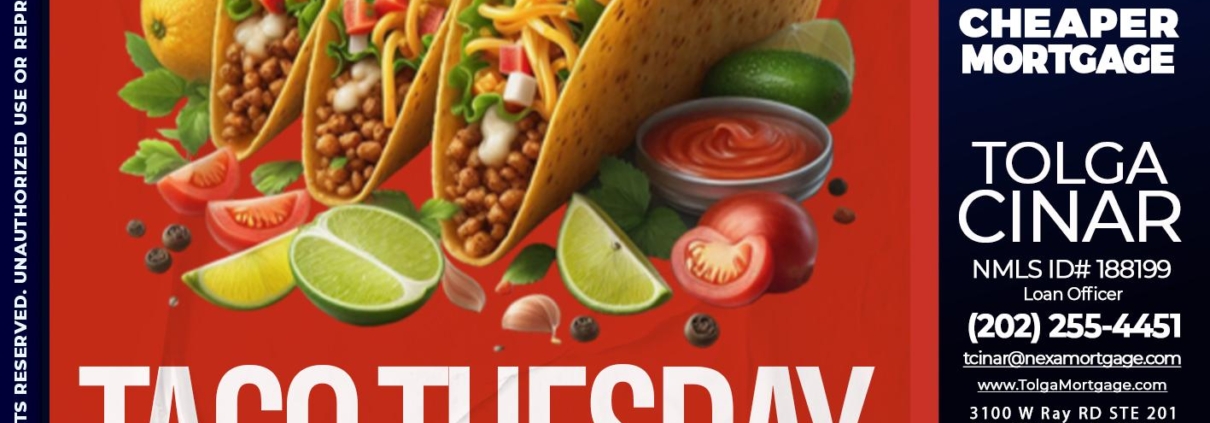 TACO TUESDAY - Tolga Cinar -Mortgage Loan OriginatorHi, my name is Tolga Cinar. I’m a Loan Officer with NEXA Mortgage LLC., offering personalized mortgage solutions, fast customized quotes, great rates and service with integrity.