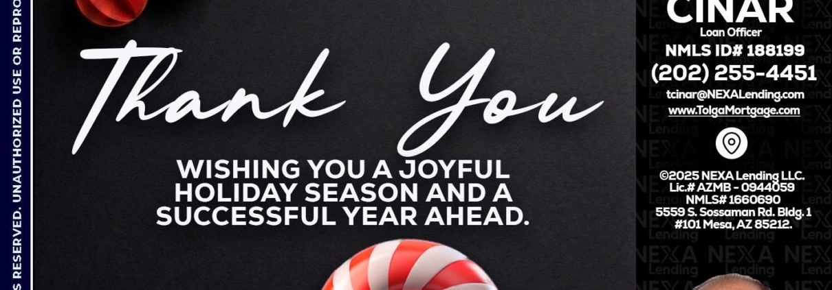 Hi, my name is Tolga Cinar. I’m a Loan Officer with NEXA Lending LLC., offering personalized mortgage solutions, fast customized quotes, great rates and service with integrity.
