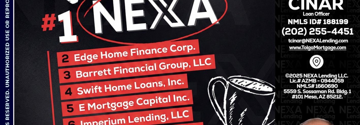 Hi, my name is Tolga Cinar. I’m a Loan Officer with NEXA Lending LLC., offering personalized mortgage solutions, fast customized quotes, great rates and service with integrity.