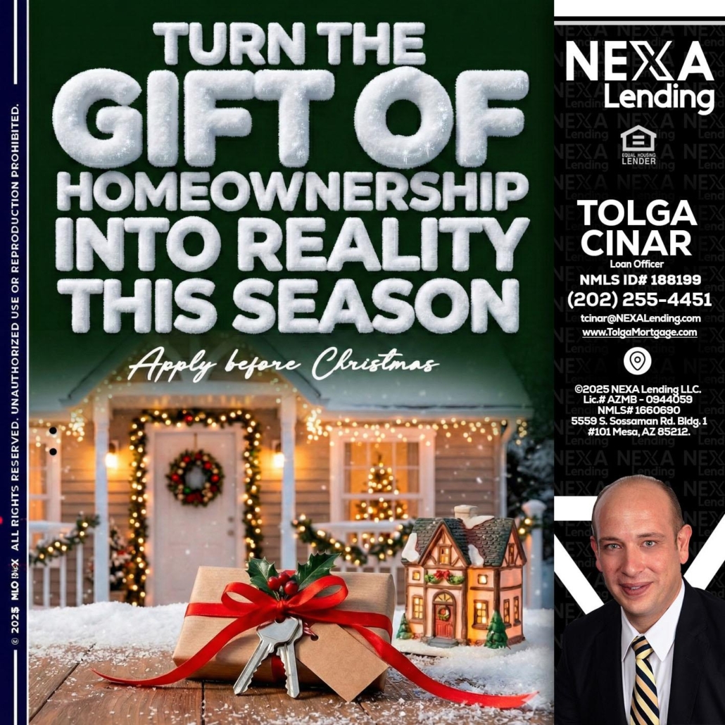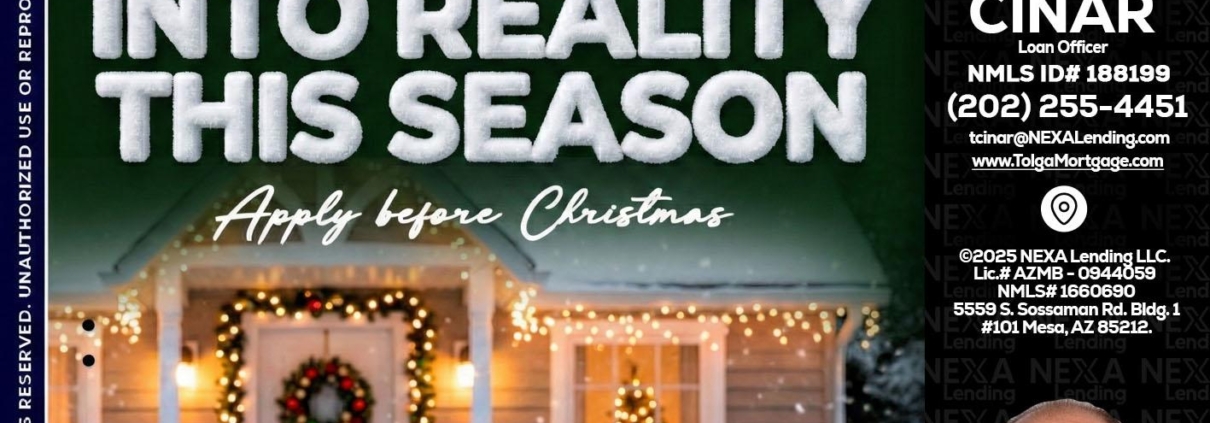 Hi, my name is Tolga Cinar. I’m a Loan Officer with NEXA Lending LLC., offering personalized mortgage solutions, fast customized quotes, great rates and service with integrity.