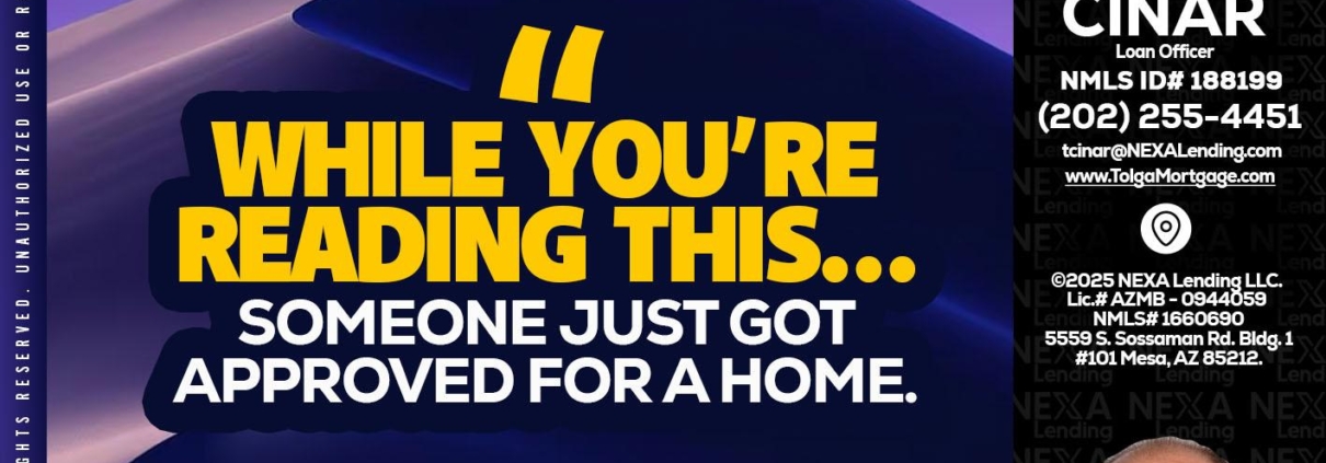 Hi, my name is Tolga Cinar. I’m a Loan Officer with NEXA Lending LLC., offering personalized mortgage solutions, fast customized quotes, great rates and service with integrity.