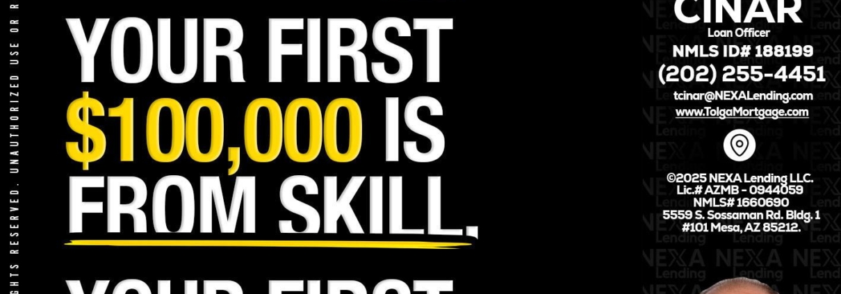 YOUR FIRST $1000 - Tolga Cinar -Mortgage Loan OriginatorHi, my name is Tolga Cinar. I’m a Loan Officer with NEXA Lending LLC., offering personalized mortgage solutions, fast customized quotes, great rates and service with integrity.